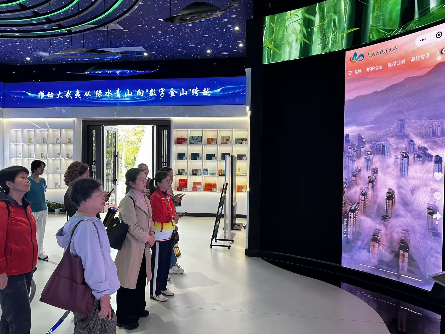 在武夷山水城,老同志们在讲解员的带领下实地参观了大武夷智慧文旅平台馆、“武夷味”旗舰店、建阳馆和政和馆,深度体验了武夷山水城不同场馆的特色和亮点。南平智慧文旅大数据屏、“一码通行、畅游南平”等一项项“科技+文旅”新成果更是让老同志们连连点赞。
