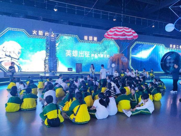 学生们参观了航天馆的核心展区,观看了火箭模型、航天实物等,了解了长征系列运载火箭的相关知识,以及中国空间站的形态结构。他们还参观了荣誉隧道,了解了中国的航天发展历程和航天员的事迹。在创意课堂,学生们通过互动学习了解了航天含义、航天词源、航天员在太空上的生活状态等知识,并参与了航天知识问答环节。